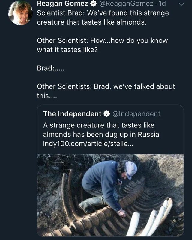 yup. Steller's sea cow's blubber was described as tasting like almond oil - y’know, before it was hunted to extinction. (or maybe the sea urchins did it (while buttling, with the candlestick in the library, presumably))